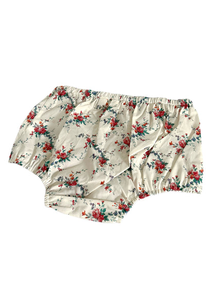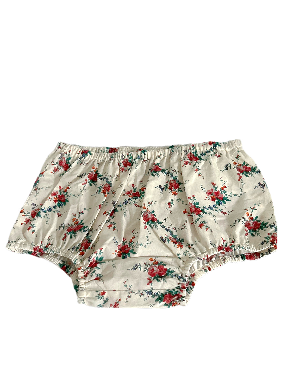 Features a sweet bloomer for littles, a crisp cotton lawn, an archival Liberty Fabrics floral from the 1860s with delicate clusters of roses, tiny blossoms, and trailing foliage. With stretchy elastic for all-day comfort. Authentic overrun/extra stock, with damaged brand tag, with material label. Retail price $58 USD.
