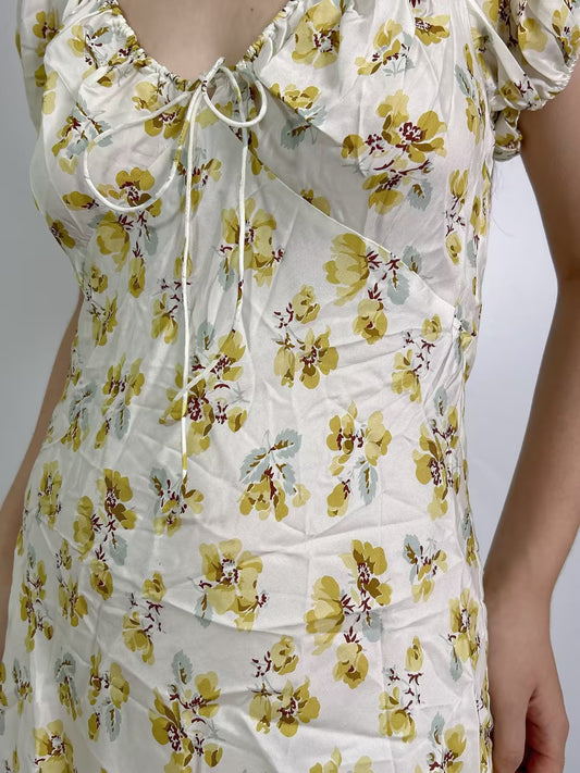 Mini-robe en soie mélangée Sera à imprimé floral doré