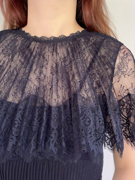 Robe longue Silentium - Dentelle marron chocolat en UK8