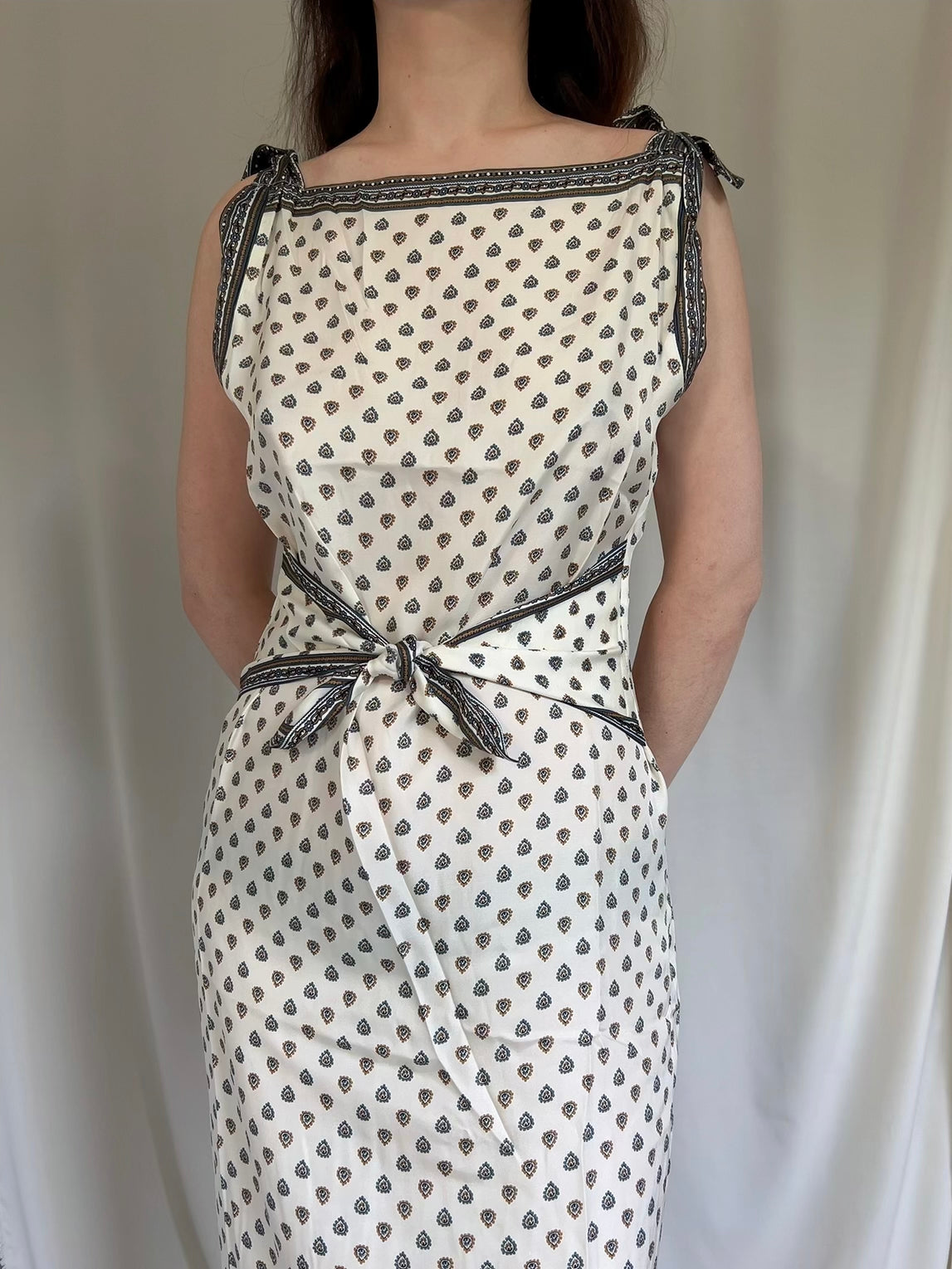 Robe courte, liens au dos, corsage à pinces, volants sur le col Peter Pan et les poignets. Style Emma Roberts. Fabriqué avec du tissu excédentaire de l'usine de la marque, avec étiquette de cou, sans étiquette d'entretien. Prix de détail 358 USD.