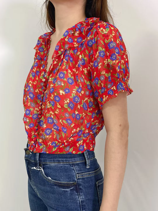 아나이스 플로럴 실크 탑 레드 데이플라워 메도우